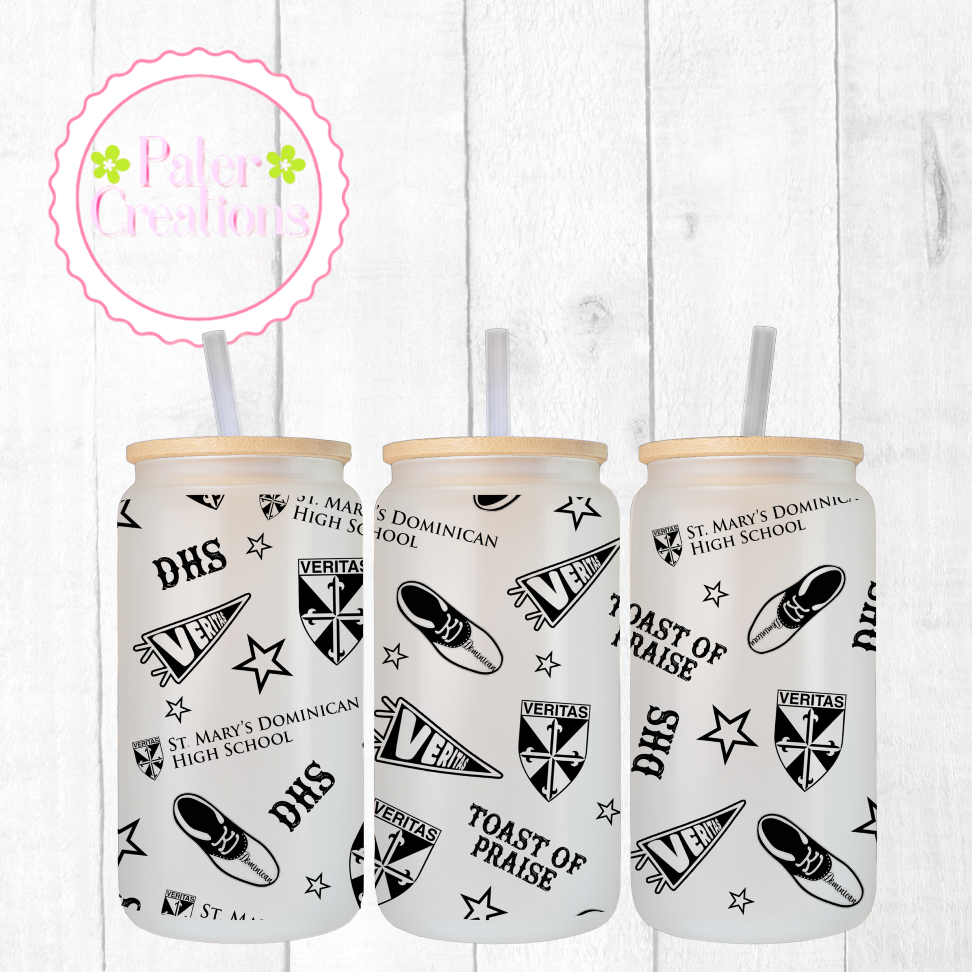 Sip in style with our St. Mary’s Dominican High School Libbey glass cup, designed for girls who love classic school pride with a modern, chic twist. Featuring a sleek black & white Dominican-inspired design, this glass is perfect for iced coffee, cold brew, matcha, or your favorite drink.