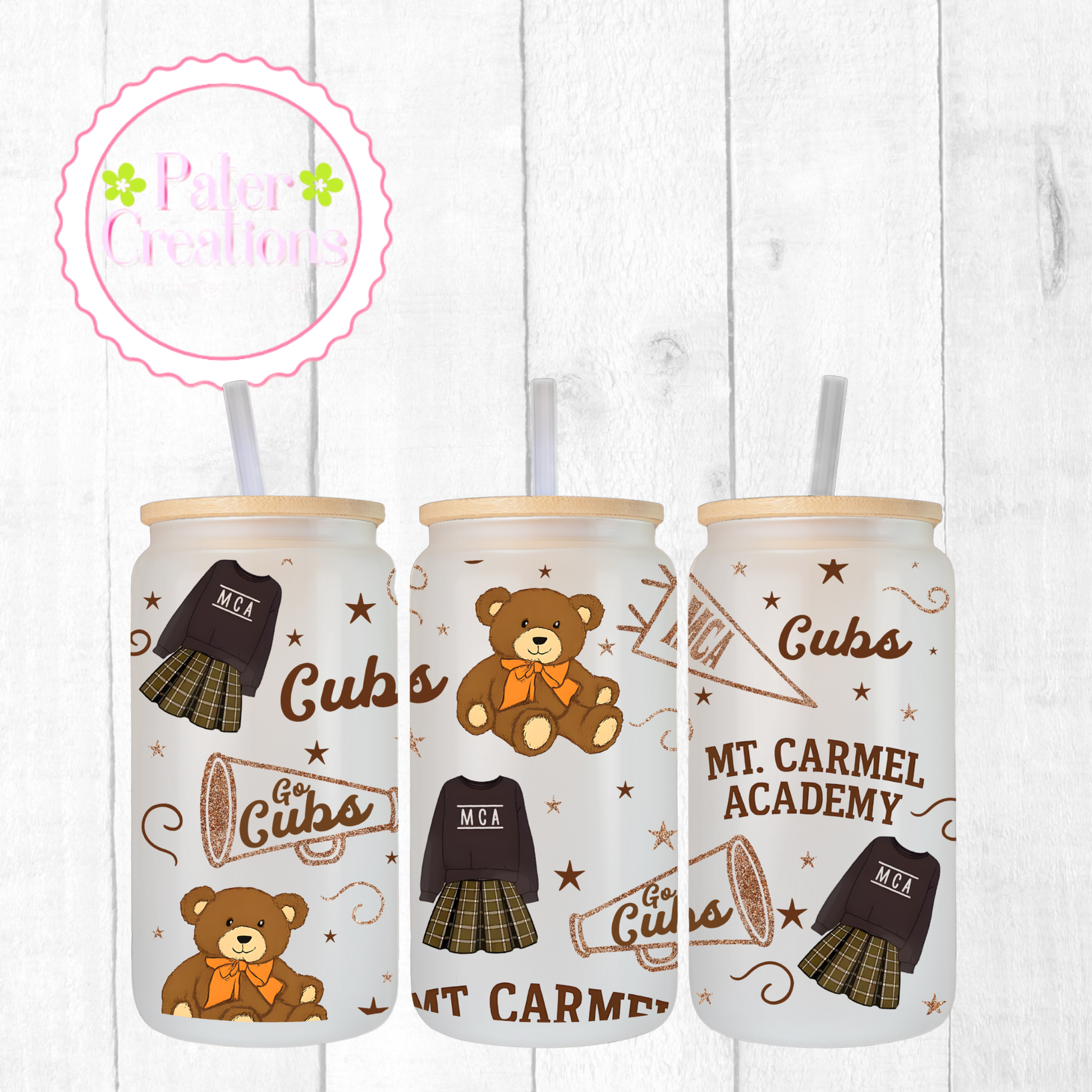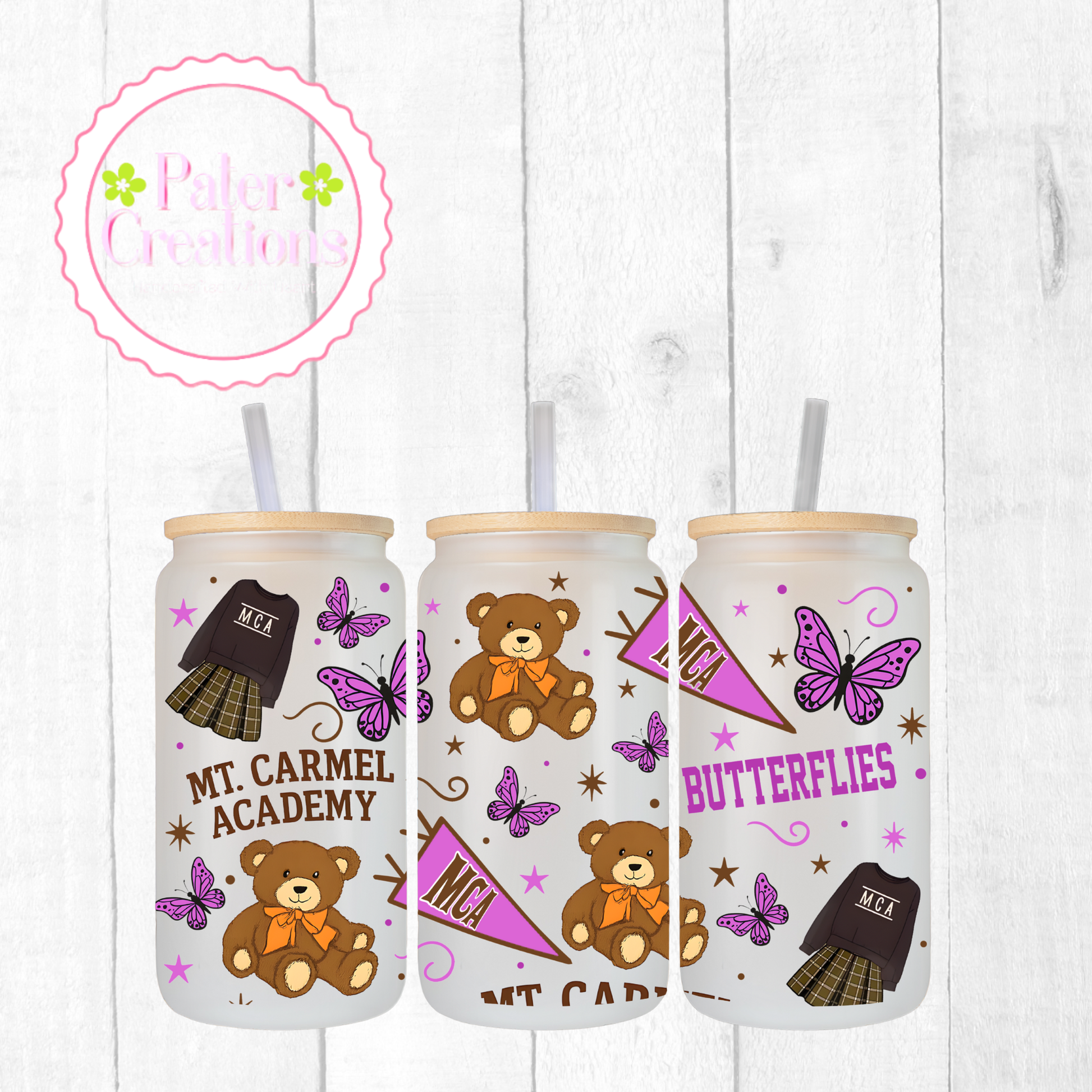 Show your Mount Carmel pride in style! ✨ Our exclusive MCA Libbey glass collection comes in 4 unique designs, each one featuring a cute and trendy twist. Perfect for iced coffee, matcha, or your favorite drink — personalized, stylish, and totally you!